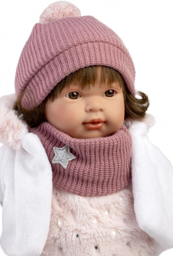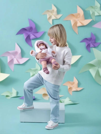 Verwijder eenvoudig de beveiliging en de pop werkt meteen! Zodra de fopspeen uit de mond wordt gehaald, begint de pop eenvoudige woorden te zeggen en realistische huiltjes te maken. Het kind leert hoe het huilen kan worden gekalmeerd met de speen. De pop is met de hand gemaakt in Spanje en wordt geleverd in een geschenkdoos, ideaal voor elke gelegenheid.