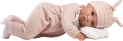 Sprekende realistische pop voor kinderen vanaf 3 jaar, die bij het indrukken van de borst “mama”, “papa” zegt en realistische geluiden maakt. Heeft een zacht stoffen lichaam en armen en benen die met een gewricht bevestigd zijn.