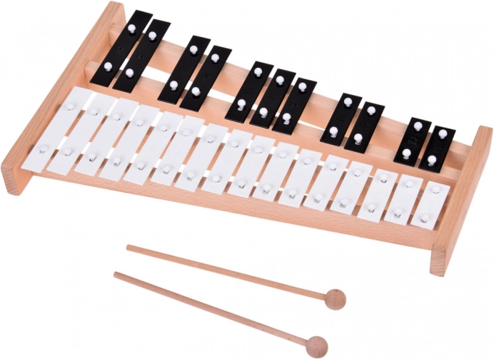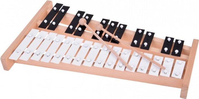 Houten chromatisch klokkenspel met 27 tonen, ideaal voor muziek thuis en in de les. Elegantie en hoogwaardige klank.