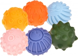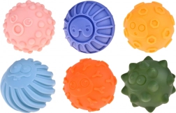 Elke van de zes ballen heeft een andere vorm en structuur, met diverse uitsteeksels die de tastzin stimuleren en de ontwikkeling van zintuiglijke receptoren bevorderen. Dit helpt bij de ontwikkeling van de coördinatie en tastvaardigheden van kinderen.