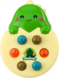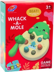 Het Whack-a-Mole vaardigheidsspel in de vorm van een schattige dinosaurus is geweldig voor kinderen die willen genieten én hun vaardigheden willen ontwikkelen. Het doel is om op de gekleurde kopjes te slaan die uit de gaatjes omhoog komen, wat snelle reacties en goede coördinatie vereist. Dankzij de veilige hamer, ontworpen voor kleine handjes, is het spel niet alleen leuk maar ook veilig.