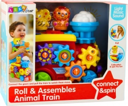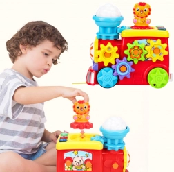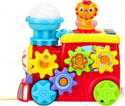 De interactieve locomotief is ontworpen om niet alleen te vermaken, maar ook de fijne motoriek, oog-handcoördinatie en nieuwsgierigheid van uw kind te ontwikkelen. De locomotief is uitgerust met draaiende tandwielen die het kind in beweging kan zetten, wat de ontwikkeling van precieze handbewegingen ondersteunt en basismechanische relaties leert. Bij het indrukken van de knoppen worden licht- en geluidseffecten geactiveerd, die het gehoor en het zicht van het kind stimuleren.