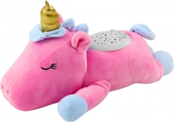 De pluche roze eenhoorn met projector is een schattig en functioneel speelgoed dat de aandacht trekt met zijn zachte roze design met sterretjes en maantjes op de oortjes en pootjes. De ogen zijn van glanzend plastic en de neus is geborduurd, wat het extra bijzonder maakt.