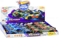 De licht- en geluidseffecten worden geactiveerd door op een knop te drukken, wat het spel nog meeslepender maakt. De auto is verkrijgbaar in twee kleuren – oranje met groene accenten en blauw met een dynamisch carrosseriedessin geïnspireerd op racewagens.