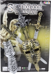 Met deze ridderset kunnen kinderen dappere strijders worden. Dankzij het gestileerde masker krijgen ze een ridderlijke uitstraling en voelen ze zich als in de middeleeuwen. De set bevat drie zwaarden van verschillende lengtes, een decoratief masker en twee polsbeschermers, die het geheel een realistische ridderstijl geven.