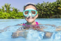 Het Bestway zwemmasker biedt uitstekende zichtbaarheid onder water dankzij de brede, transparante lenzen. Ideaal voor zwemmen in het zwembad en andere wateractiviteiten, comfortabel en veilig dankzij de heldere kleuren en verstelbare constructie.
