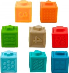 Spelen met de blokken stimuleert de ontwikkeling van de fijne motoriek, oog-handcoördinatie, concentratie en geheugen. Met behulp van kleuren en patronen leert het kind geleidelijk basiskleuren, cijfers en eenvoudige vormen herkennen. Dankzij de compacte afmetingen zijn de blokken ideaal om niet alleen thuis, maar ook onderweg mee te spelen – ze zijn gemakkelijk schoon te houden en handig mee te nemen.