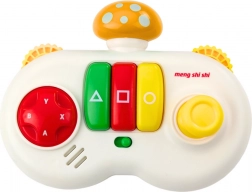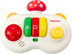 Dit kleurrijke interactieve speelgoed is ontworpen als een controller met een bovenkant in paddenstoeldesign in rood, groen of geel, wat de aandacht van kinderen trekt. De console is uitgerust met gekleurde knoppen, geluidseffecten, draaibare wieltjes met een reliëftextuur en drie centrale knoppen in de vorm van een driehoek, vierkant en cirkel.