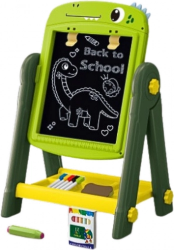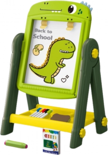 Dubbelzijdig magnetisch tekenbord Dinosaurus groen met accessoires