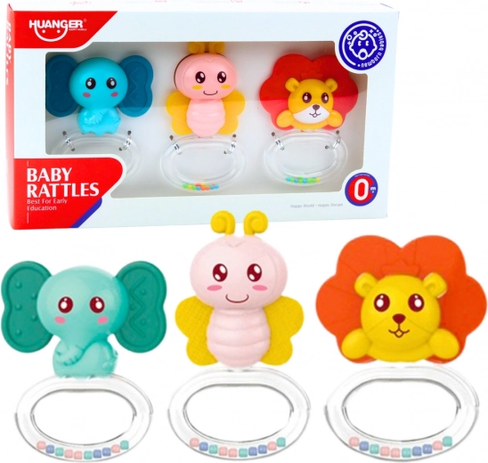 Set Rammelaars en Bijtringen voor Baby’s Diertjes 3 stuks