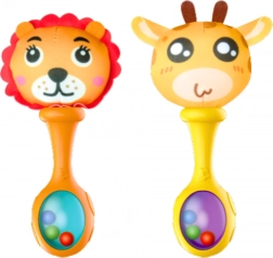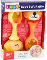 De set rammelaars is ontworpen met het oog op de behoeften van een groeiend kind. Het heeft een ergonomische vorm aangepast aan kleine handjes en een zachte textiele oppervlakte, die prettig aanvoelt. Levende kleuren en diermotieven zoals leeuw en giraf trekken onmiddellijk de aandacht van het kind en stimuleren zijn zintuigen.