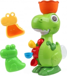 Maak kennis met de groene dinosaurus, de hoofd attractie van deze set. Hij wordt vergezeld door verschillende kleurrijke accessoires, zoals een vangnet en een set drijvende speeltjes in verschillende vormen en texturen die kinderen kunnen vangen en waar ze water overheen kunnen gieten.
