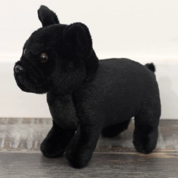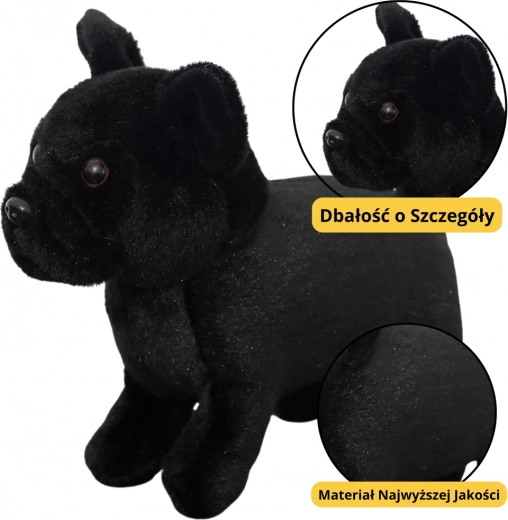 Zwarte pluchen hond onderscheidt zich door zijn lieve gezicht, staande oren en stevige constructie, waardoor hij realistisch en charmant is. Dankzij de compacte afmetingen past hij gemakkelijk in kinderhanden, wat gemakkelijk dragen, knuffelen of plaatsen in een wieg mogelijk maakt. Hij is een geweldige metgezel tijdens het slapen, bij dagelijkse spelletjes of als decoratief element in de kinderkamer.