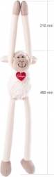 Schaapje Olivia Hug Me is een heerlijk zachte metgezel voor onderweg, in het bedje en om mee te spelen. Ze heeft lange armen en benen die gemakkelijk om de nek of de duwbeugel van de kinderwagen wikkelen, en praktische klittenbandsluitingen op de pootjes. De zachte witte vacht en de geborduurde details maken haar een veilige vriend voor baby’s en oudere kinderen.