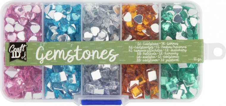 Set kleurrijke edelstenen biedt prachtige stenen in 5 kleuren en 2 vormen, allemaal verpakt in een handige plastic organizer.