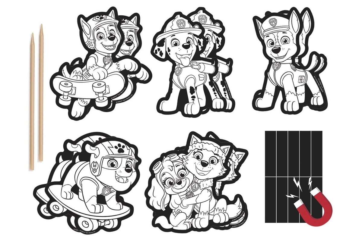 Laat de kinderkamer of koelkast stralen! Met deze creatieve set met Paw Patrol-motieven krassen kinderen de zwarte laag weg om de vrolijke kleuren eronder te onthullen en zo unieke magneten te maken. Elk plaatje verandert eenvoudig in een magneet die je op de koelkast, een bord of andere metalen oppervlakken kunt plaatsen.