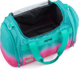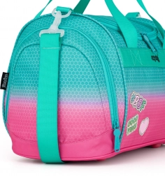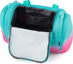 De tas pronkt met een gradiëntdesign dat overloopt van turquoise naar roze. Deze stijlvolle combinatie maakt de tas niet alleen praktisch, maar ook modieus.