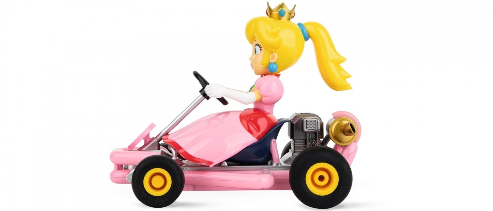 Geniet van roze race-avonturen met de op afstand bestuurbare Mario Kart-auto van Carrera RC in schaal 1:18. Prinses Peach gaat van start in haar nieuwe kart, klaar voor elk circuit, met een topsnelheid van 9 km/u en een lengte van 21 cm.