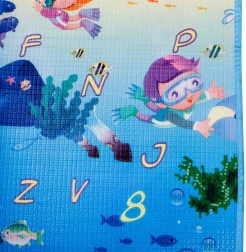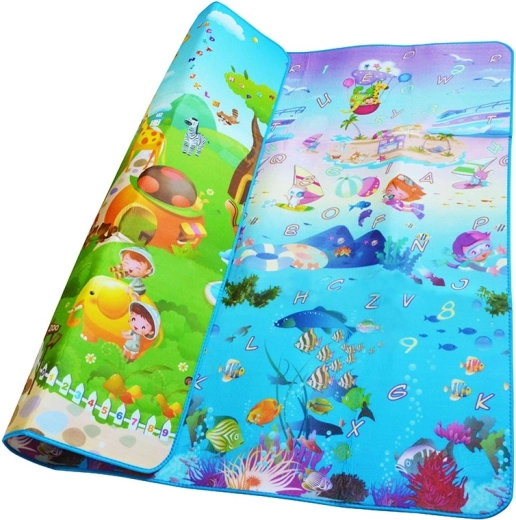 Eén zijde met de zeewereld en het alfabet, de andere met een vrolijke dierentuin – stimuleert de fantasie en natuurlijk leren tijdens het spelen.