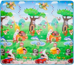 Deze opvouwbare mat van duurzaam EPE-schuim is ideaal als kleed voor de kinderkamer en speelhoek. Dankzij de dubbelzijdige print combineert hij plezier en leren – kinderen oefenen tijdens het spelen letters, cijfers en dieren.