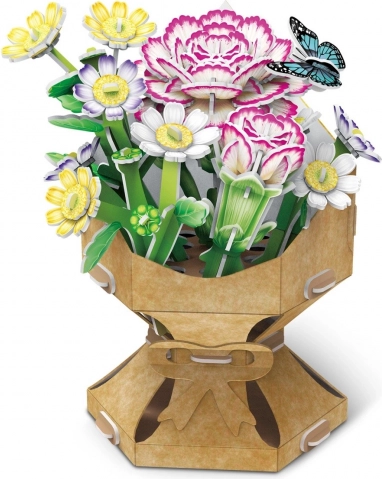 Ontdek de schoonheid van de nieuwe collectie driedimensionale puzzels van Cubic Fun. Deze set bevat 134 stukjes waarmee je een prachtig kleurrijk anjerboeket maakt.