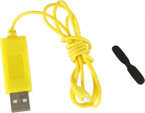 - Helikopter, afstandsbediening, reserve staartrotor, USB-kabel, schroevendraaier, handleiding