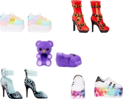Laat je stijl zien met de nieuwe luxe schoenencollectie van Rainbow High. Creëer geweldige outfits met 27 verschillende paren schoenen in elke verpakking!