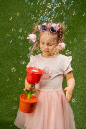 De machine creëert in een oogwenk een dichte wolk van fijne belletjes – ideaal voor actieve spelletjes en kinderlijke vreugde.