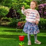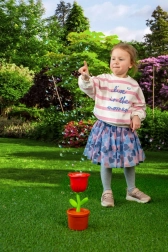 Het kleurrijke roosontwerp met praktische bloempot ligt goed in kinderhandjes en staat stabiel tijdens het spelen buiten en binnen.