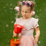 Een schattige bubbelmachine in de vorm van een roos zorgt voor eindeloos plezier voor kinderen, zowel in de tuin als binnen. In een mum van tijd creëert hij wolkjes van kleine bellen en dankzij de geïntegreerde LED ziet het er vooral ’s avonds betoverend uit. In de verpakking zitten twee flesjes van 40 ml. Snelle bubbelproductie, magisch LED-effect, eenvoudig in gebruik en atractief bloemenontwerp voor kleine bubbelliefhebbers.