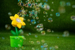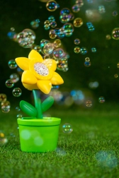 Deze bloemen-bellenmachine verandert elke middag in de tuin in een betoverend spektakel. Giet de vloeistof erin, zet aan en binnen een moment verschijnen er tientallen fonkelende belletjes die kinderen graag vangen en achterna rennen. Het compacte design in de vorm van een bloempot is stabiel en eenvoudig mee te nemen.