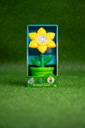 Het ontwerp in de vorm van een gele bloem in een groene bloempot trekt meteen de aandacht en verandert elk spel in een vrolijke show vol belletjes.