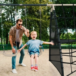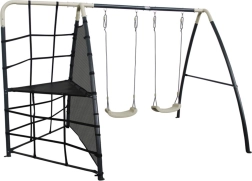 De afzonderlijke componenten zijn ontworpen met oog voor comfort en veiligheid. Krachtige grondankers zorgen voor stabiliteit, zelfs als kinderen volop vaart maken. Polypropyleen zittingen zijn licht, duurzaam en eenvoudig te reinigen. De ergonomische vorm en de juiste diepte van het klimnet zorgen voor comfort en extra speelplezier.