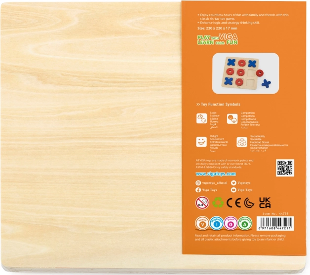 Dit spel is ideaal voor kinderen vanaf 3 jaar. Het is gemaakt van hoogwaardig hout, wat zorgt voor een lange levensduur en veiligheid tijdens het spelen. Het ruime bord met duidelijk gemarkeerde speelvelden in combinatie met de kleurrijke speelstukken X en O is zo ontworpen dat ook kleine kinderhanden ze makkelijk kunnen vastpakken. Het spel ontwikkelt meerdere kernvaardigheden: