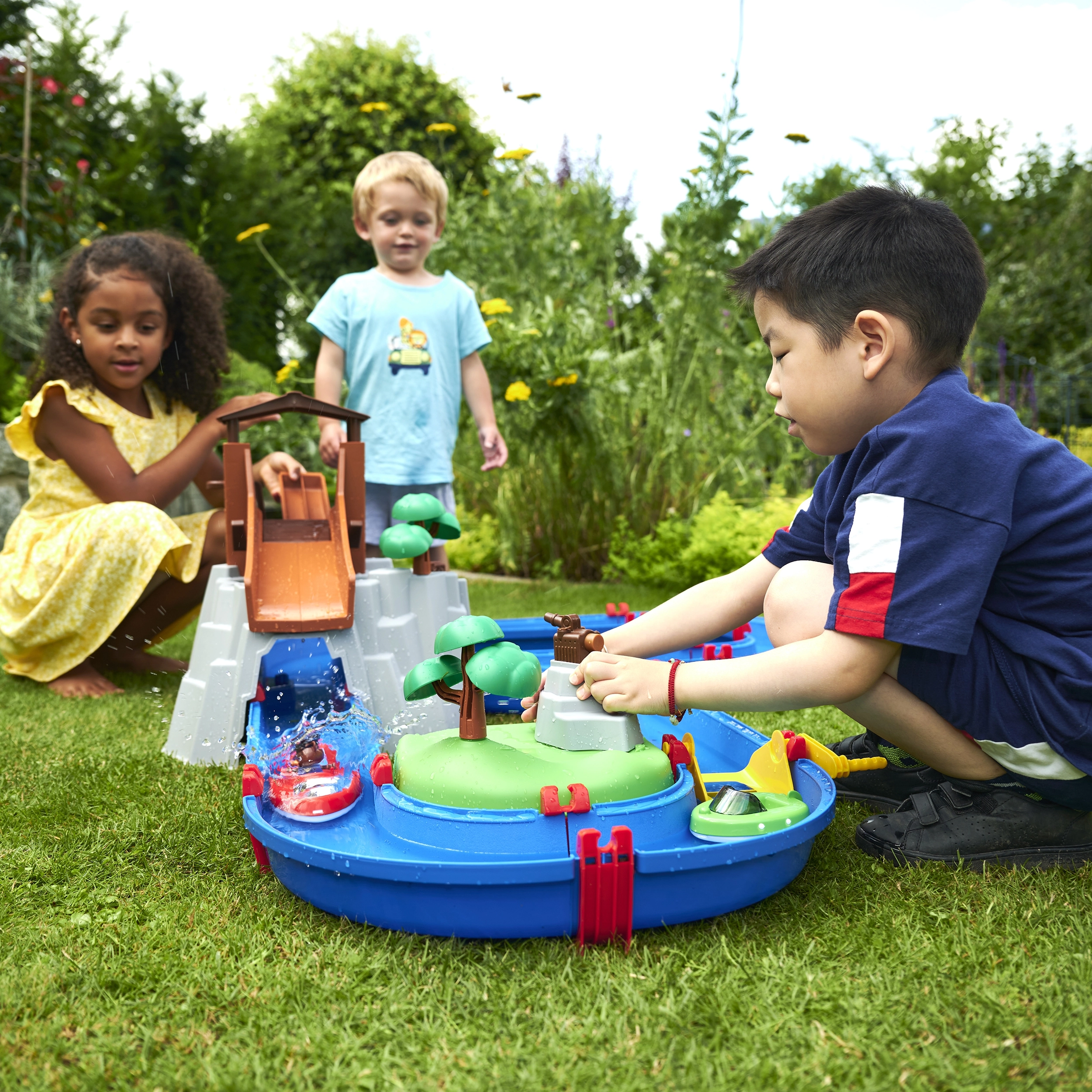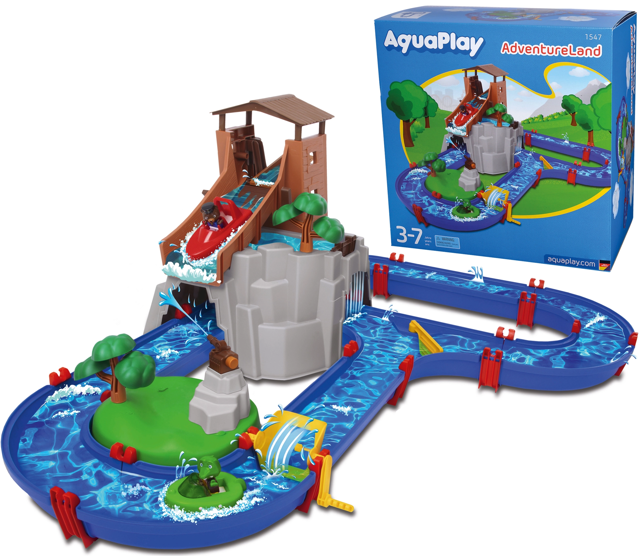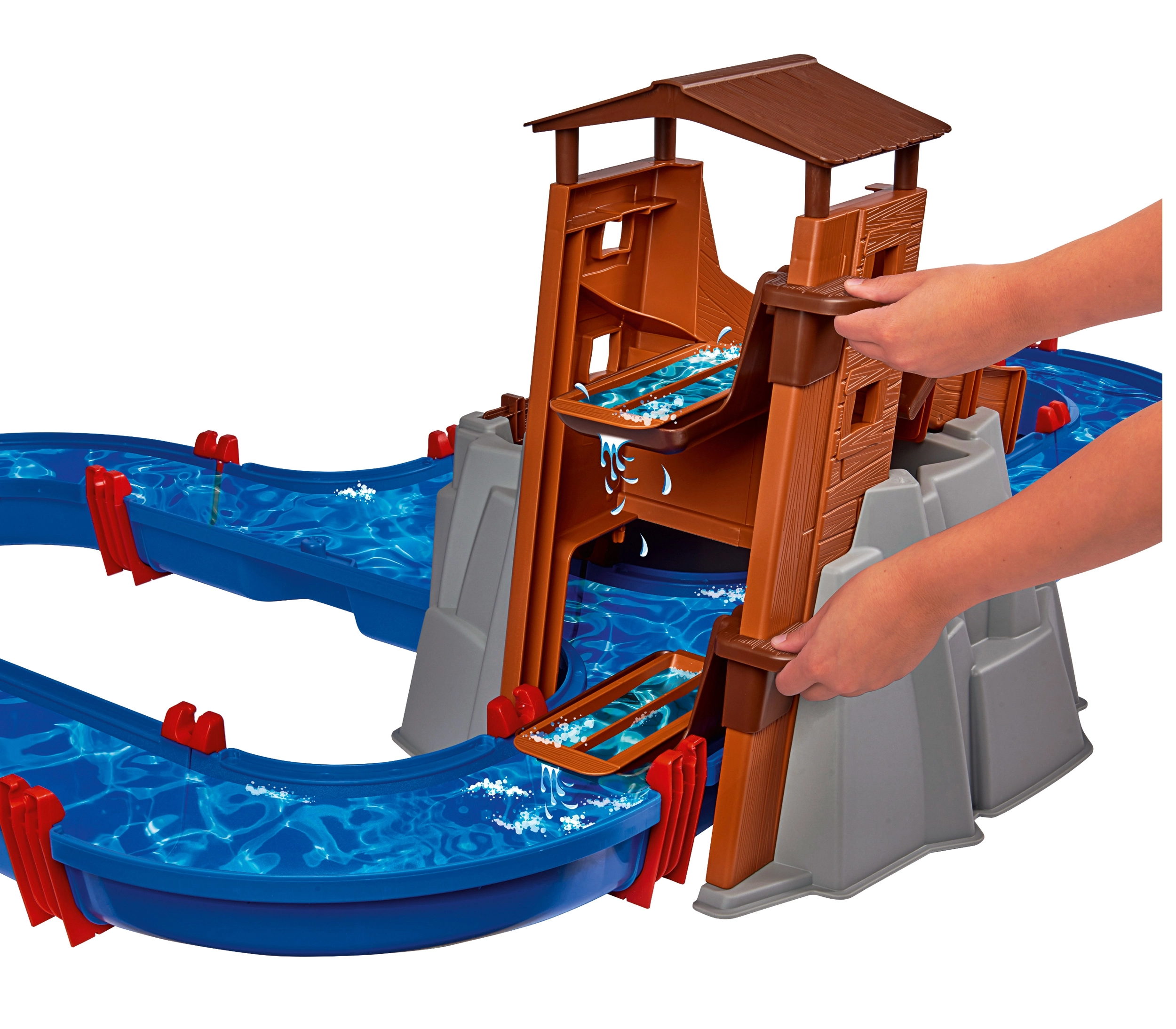 De waterbaan "Aquaplay" biedt volop mogelijkheden voor spel en leren. Met het canalesysteem, de slinger die stromingen opwekt en het waterkanon leren kinderen hoe waterstromen en waterkracht werken. Met de figuurtjes van een beer en een krokodil en de bootjes kunnen jonge onderzoekers zich onderdompelen in de fascinerende wereld van hydrodynamica.