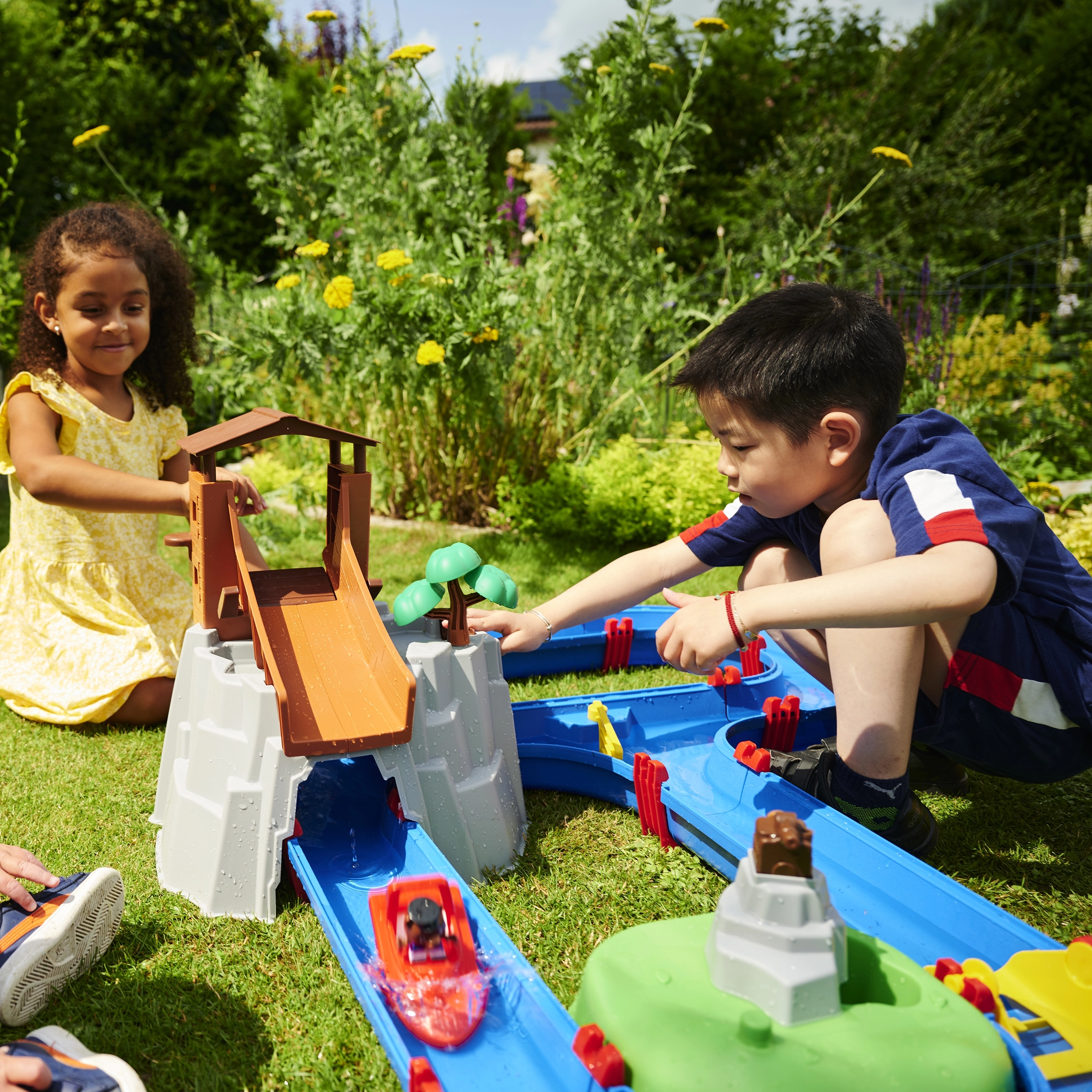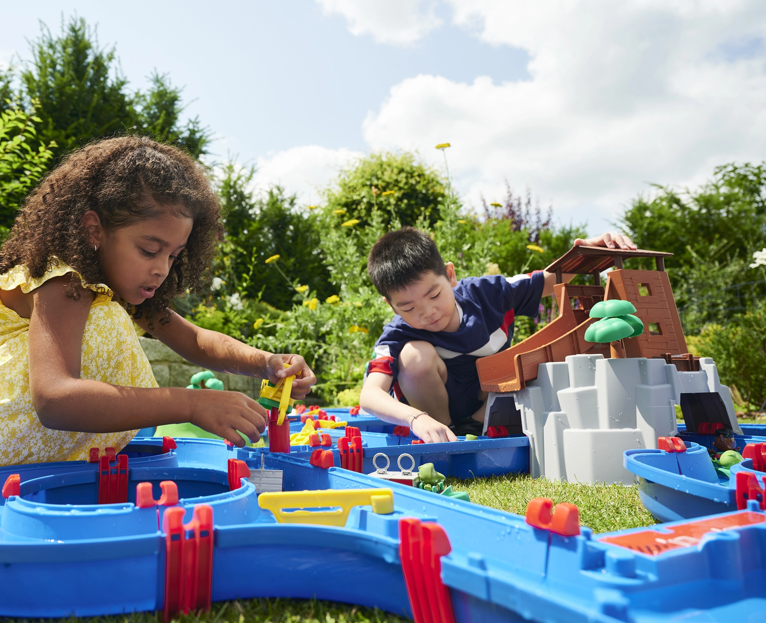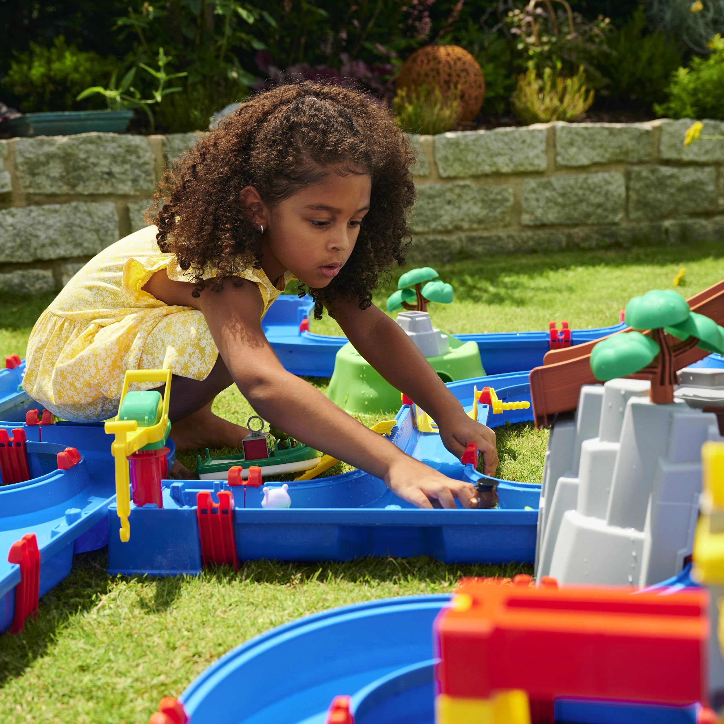De waterbaan "Aquaplay" biedt volop mogelijkheden voor spel en leren. Met het canalesysteem, de slinger die stromingen opwekt en het waterkanon leren kinderen hoe waterstromen en waterkracht werken. Met de figuurtjes van een beer en een krokodil en de bootjes kunnen jonge onderzoekers zich onderdompelen in de fascinerende wereld van hydrodynamica.