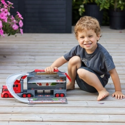 - 2-in-1: autotransporter + uitklapbare garage met racebaan