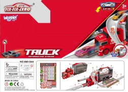 Klap de trailer open en krijg toegang tot een tweelaagse garage met parkeerplaatsen en een bochtige baan voor actievolle races.
