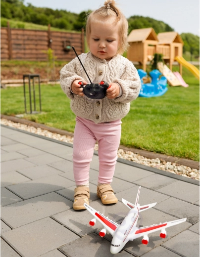 Het model is bestemd om over de vloer of de stoep te rijden – kinderen kunnen taxiën, sturen en stoppen oefenen, hun eigen “luchthaven” creëren en scenario’s voor luchtverkeer bedenken. De afstandsbediening is eenvoudig te gebruiken en ondersteunt de ontwikkeling van motoriek en fantasie.