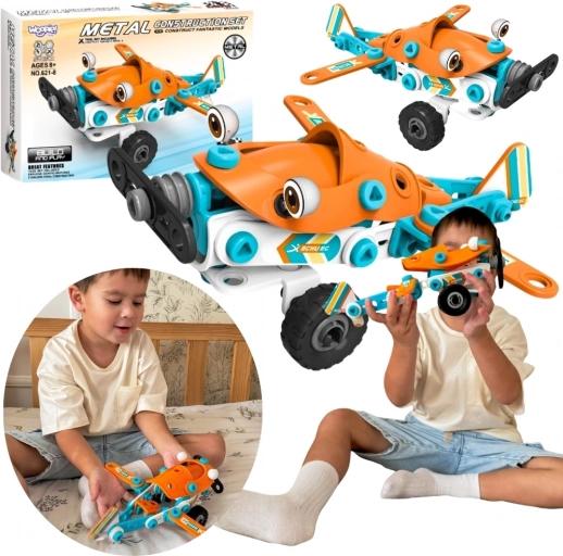 Bouw je eigen vliegtuig! Deze creatieve STEM-bouwset laat kinderen stap voor stap een vrolijk model met propeller en wielen monteren. In de doos vinden ze montagegereedschap, stickers en alle benodigde onderdelen, zodat ze meteen kunnen beginnen met creëren en het uiterlijk van het vliegtuig naar eigen fantasie kunnen aanpassen.