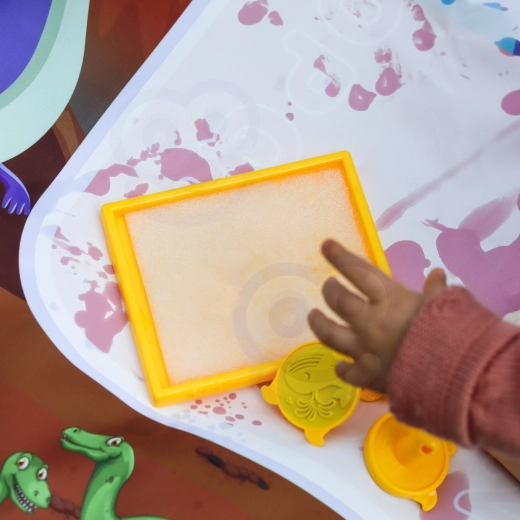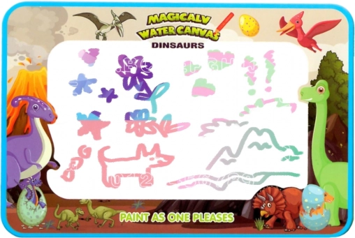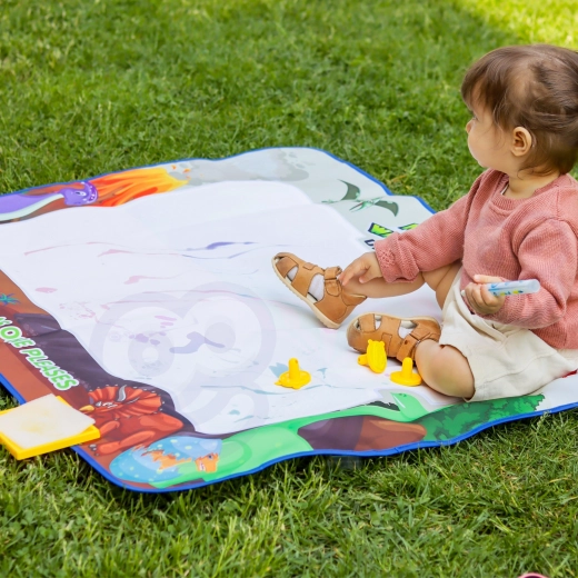 De grote watertekenmat met dinothema verandert de vloer in een creatieve studio. Tekenen doe je alleen met water – zonder vlekken, zonder geur en zonder zorgen. Zodra het water droog is, verdwijnen de krabbels en is het oppervlak weer klaar voor nieuwe ideeën.