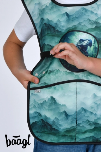 Het praktische kinderschort BAAGL Dino is ideaal voor beeldende vorming, handvaardigheid en creatieve clubs. Dankzij het afwasbare materiaal is het gemakkelijk schoon te houden en de dubbele zakken aan de voorkant bieden ruimte voor kwasten, potloden en kleine hulpmiddelen.