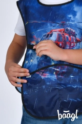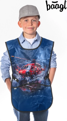 Praktisch kinderschort BAAGL voor kleine kunstenaars en knutselaars met een motief van reddingswerkers. Biedt een duurzaam, afwasbaar materiaal, twee ruime zakken en comfortabel draagcomfort bij beeldende vorming, handvaardigheid en clubs.