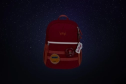 Een opvallend kenmerk van de rugzak zijn de verwisselbare patches – insignes waarin kinderen hun eigen afbeeldingen, motieven of naamlabels kunnen plaatsen. De rugzak is verkrijgbaar in meerdere modieuze kleurvarianten en heeft een inhoud van 10 liter.