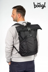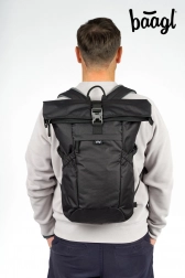 Lichte en duurzame stadsrugzak BAAGL met rolsluiting, biedt een inhoud van 29 l, draagvermogen van 7 kg en een verstevigde ergonomische rug voor comfortabel dragen. Gemaakt van waterafstotend, sneldrogend materiaal, met een gepolsterd laptopvak met eigen toegang en YKK-ritsen voor maximale betrouwbaarheid. De GRS-certificering bevestigt de duurzame herkomst van de materialen.