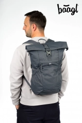 Stijlvolle en duurzame BAAGL-rolltop rugzak voor elke dag. Biedt een licht gewicht van 715 g, inhoud 29 l en draagvermogen 7 kg. Dankzij gepolsterde rug, ondersteunende banden en waterafstotend, sneldrogend materiaal beschermt hij je spullen betrouwbaar in de stad en op reis. Inclusief een gepolsterd laptopvak, hoogwaardige YKK-ritsen en GRS-certificering die duurzaamheid bevestigt.