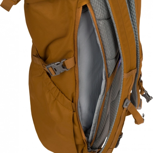 De royale inhoud van 29 l met overzichtelijke indeling, inclusief een gepolsterd laptopvak met eigen toegang, biedt ruim plaats voor alles wat je nodig hebt. Het waterafstotende, sneldrogende materiaal en de duurzame YKK-ritsen beschermen de inhoud bij elk weertype.