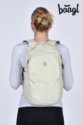 Stijlvolle stadsrugzak BAAGL Dash in beige met een ultralichte constructie van 710 g, inhoud 24 l en waterafstotend materiaal. Dankzij de anatomisch gevormde rug, verstelbare schouderbanden en afneembare ondersteunende riemen is hij ideaal voor school, werk en vrije tijd. Inclusief laptopvak, brilvak en band voor bevestiging aan bagage. De GRS-certificering bevestigt de duurzame herkomst van de materialen.