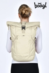 Lichte en duurzame rolltop-rugzak BAAGL met een inhoud van 29 l, ideaal voor in de stad, naar school en voor uitstapjes. Biedt een sneldrogend, waterafstotend materiaal, gepolsterde rug, ondersteunende banden voor comfort ook bij zwaardere lading en een apart gewatteerd laptopvak. Kwalitatieve YKK-ritsen en GRS-certificering onderstrepen de lange levensduur en duurzaamheid.