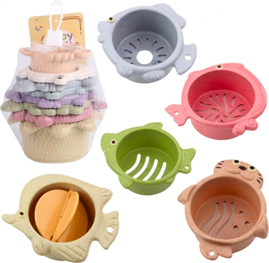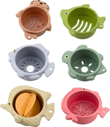 Deze bekertjes zijn groot, licht en gemakkelijk vast te pakken met kleine handjes, wat geweldig is voor het leren vastpakken en manipuleren van voorwerpen. Kinderen kunnen een toren bouwen, bekertjes in elkaar zetten of ze gebruiken tijdens het baden - dankzij de openingen kan er water doorheen stromen. Op deze manier krijgen de bekertjes een sensorische dimensie en functioneren ze perfect als badaccessoire.